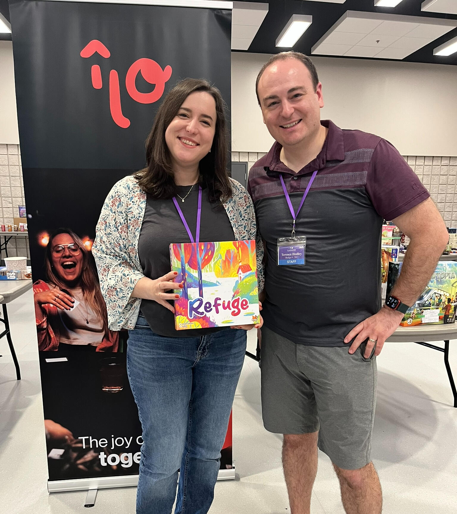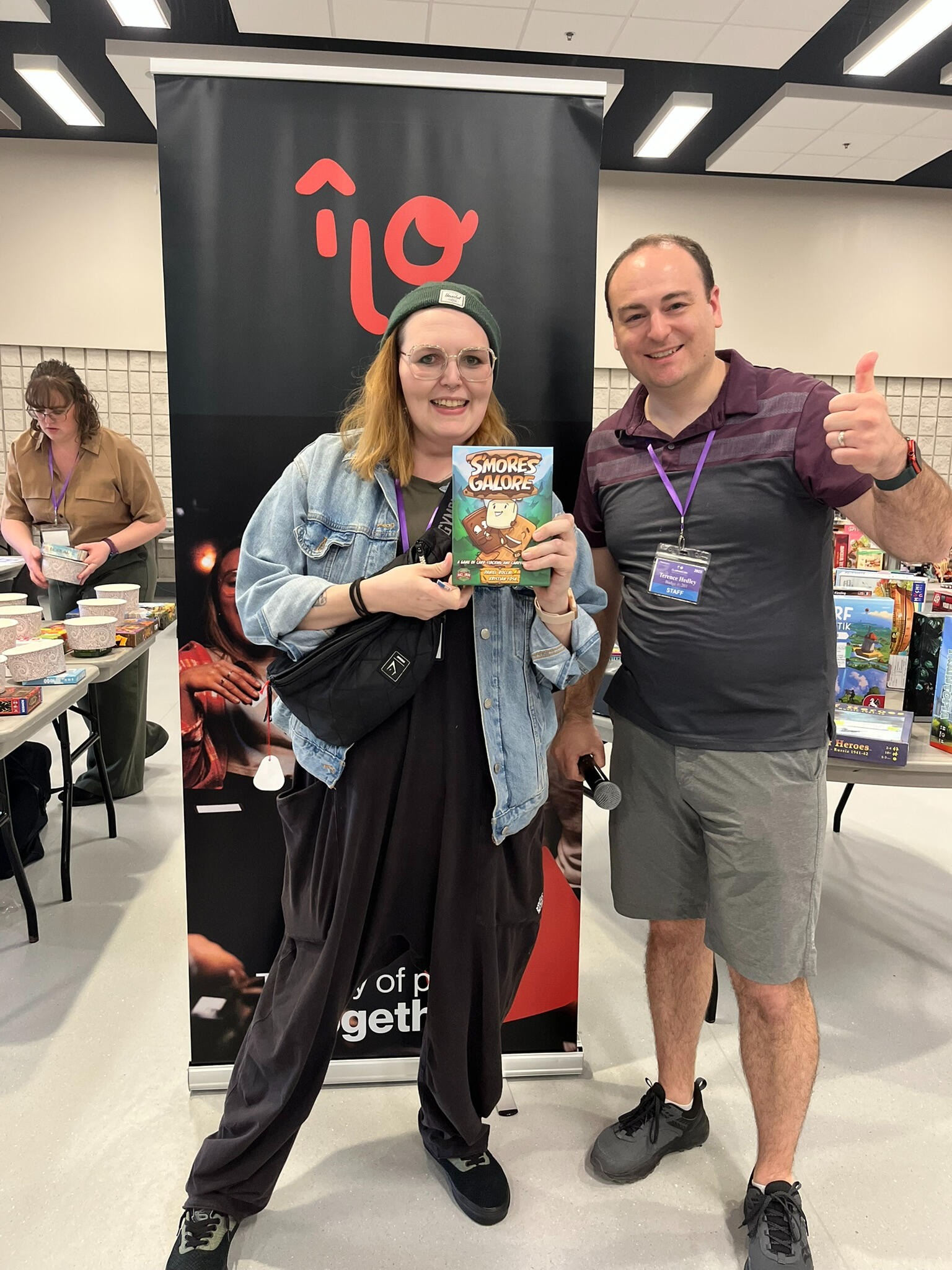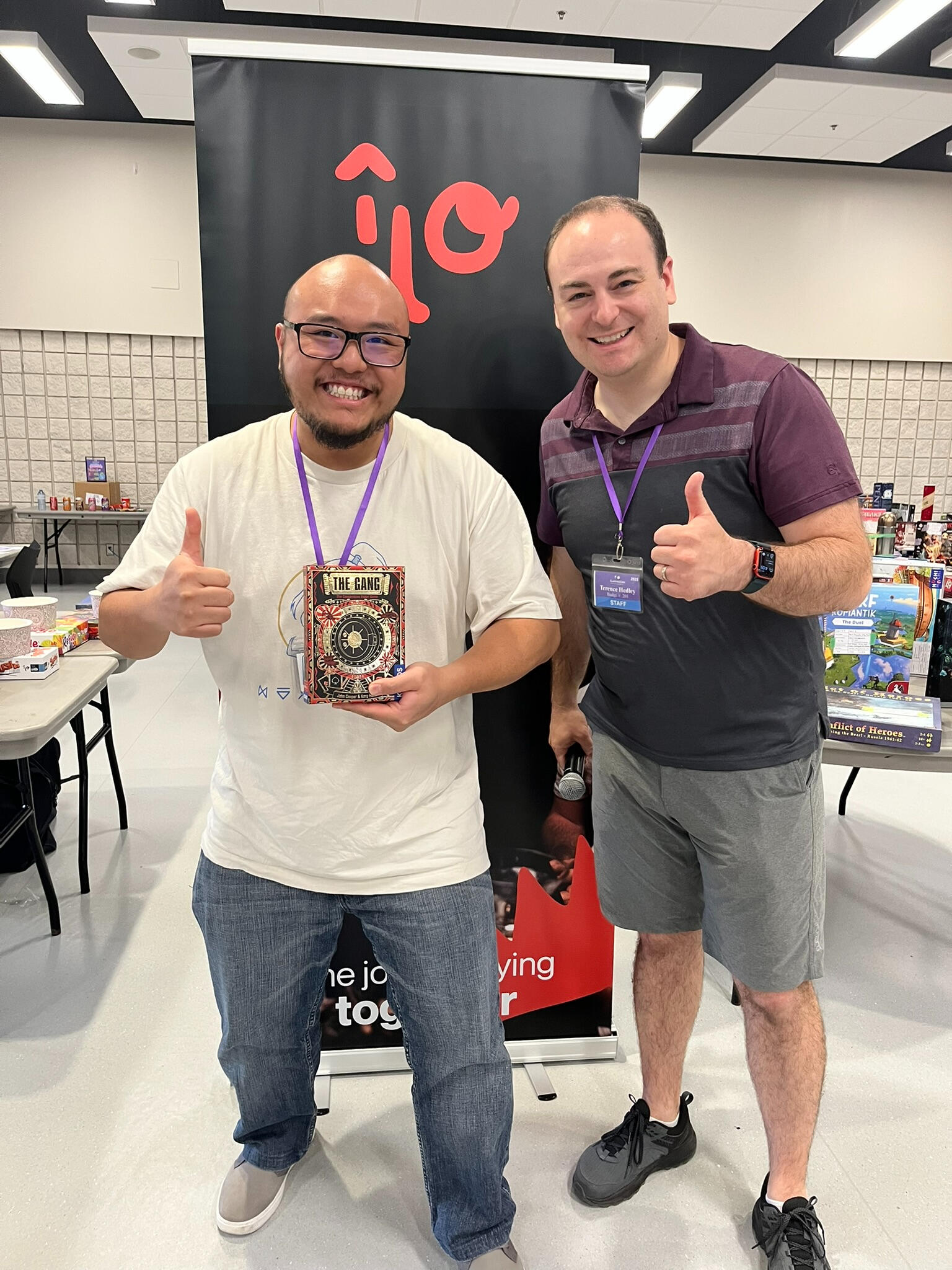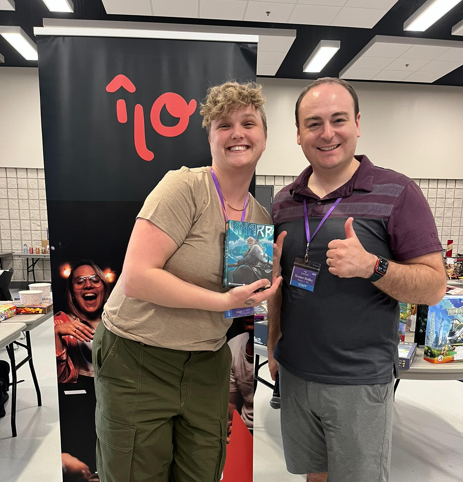 Cole Smith (Right), seen here with a ClarinCon attendee, is a board game designer from Ontario, Canada. He is the designer of Tanuki, a fast-paced card game where players compete to grow the most productive bamboo garden. Cole is also co-designer with Adrian Adamescu for their upcoming anticipated title, 3 Magi! Thank you Cole for joining us at ClaringCon 2025!