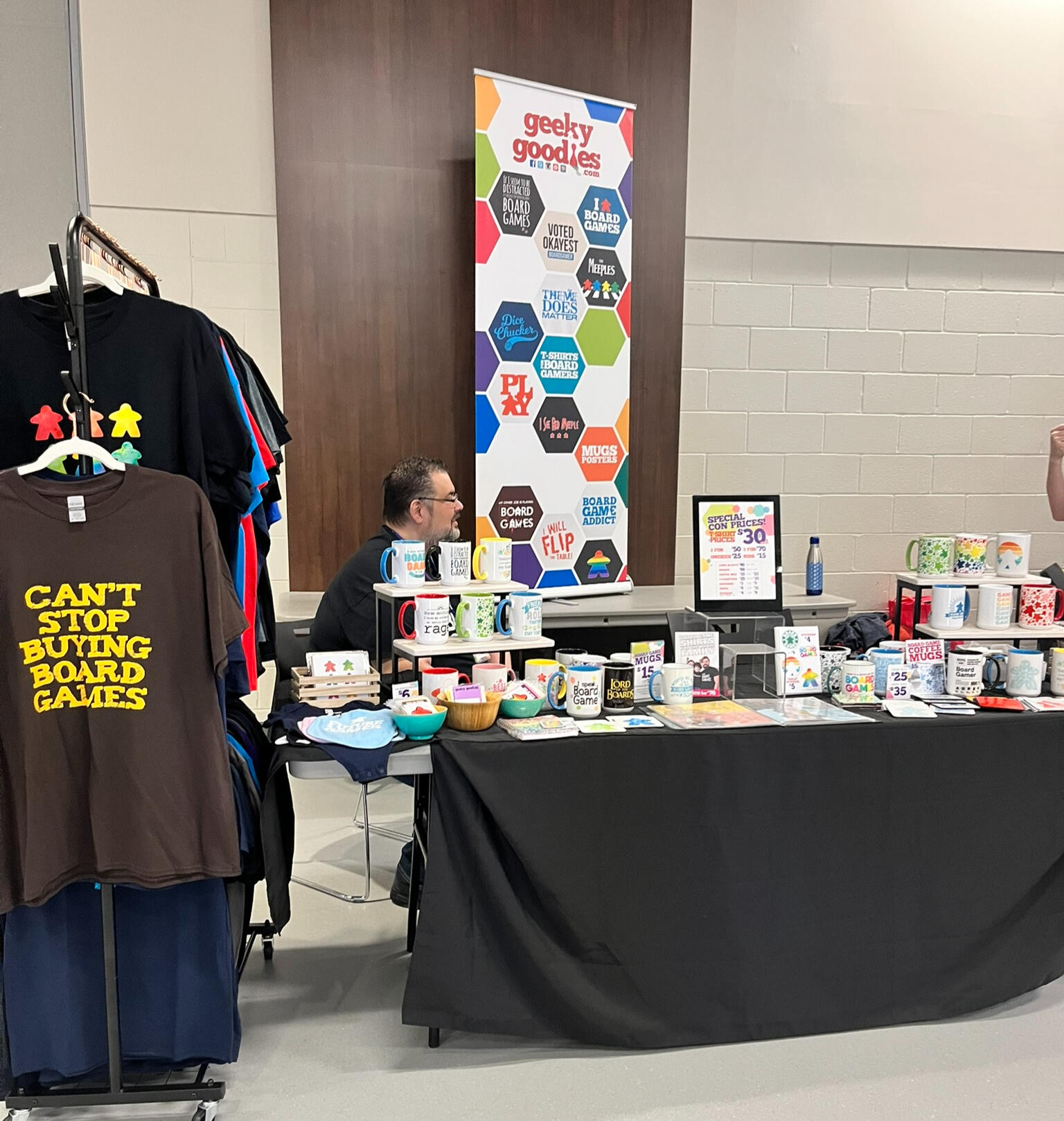 At Geeky Goodies we aspire to spark curiosity, with our shirts and products becoming conversation starters, prompting questions like, "What's that you're wearing?" or "What's this all about?" It's our way of contributing to the expansion of The Board Gaming Hobby, even if just in a small but meaningful way. Join us on this exciting journey of uniting enthusiasts and spreading the joy of board gaming!Geeky Goodies joins ClaringCon for the 2nd year in a row and has Collaborated on our New Logo and Merchandise offerings.